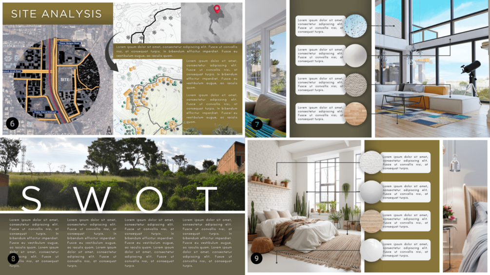 You'll receive 15 pages of Architectural Presentation once you avail this product. This would probably help you how portfolio works in Canva. It can be your practice guide to make your own creative and attractive presentation for your designs.