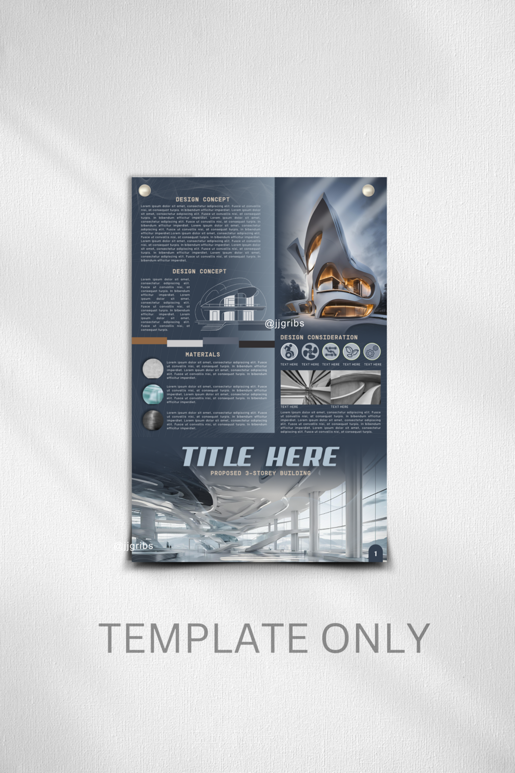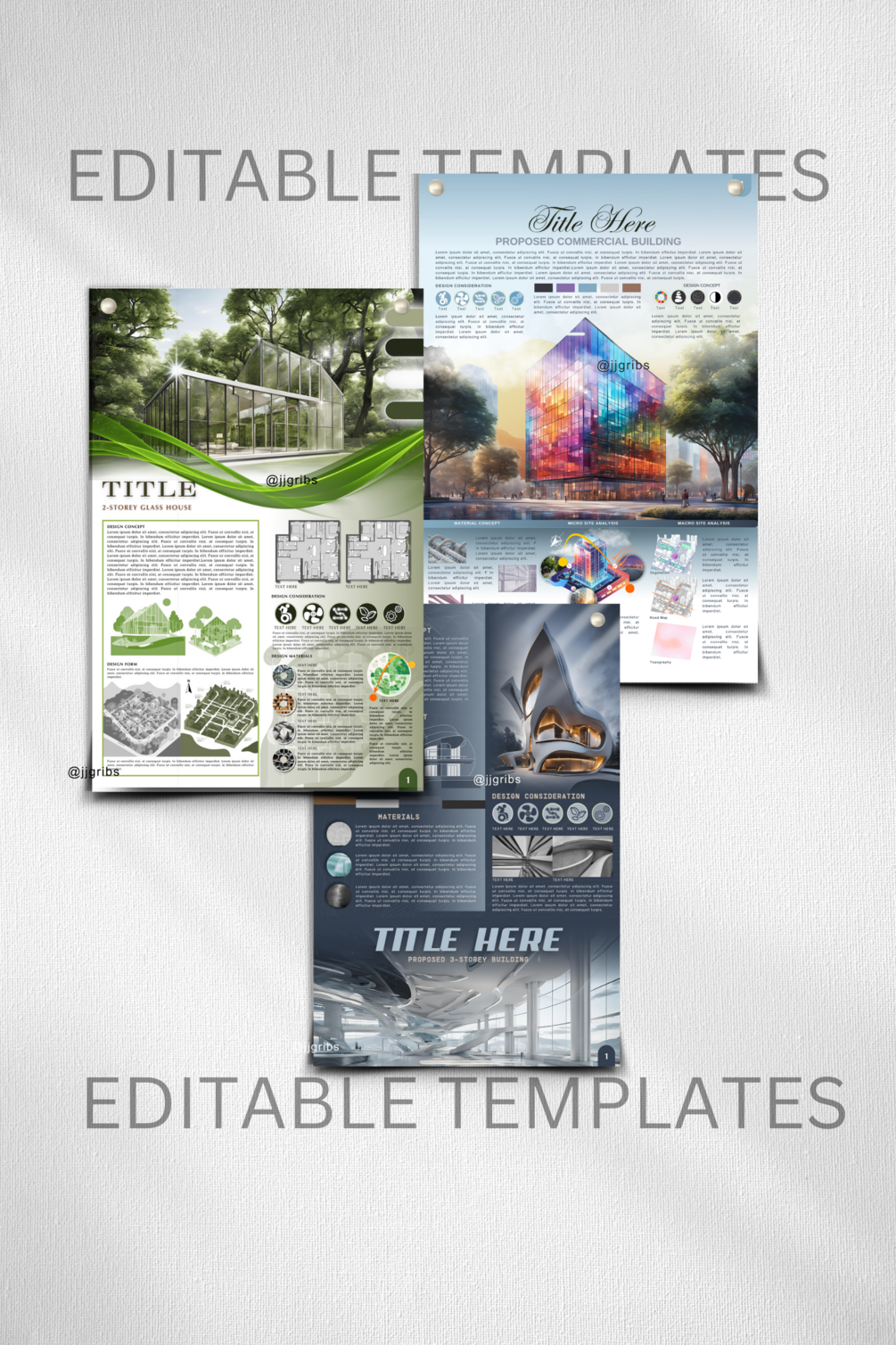 3 template sets of Architectural Concept Boards once you avail this product. This would probably help you how concept board works in Canva. It can be your practice guide to make your own creative and attractive presentation for your designs.