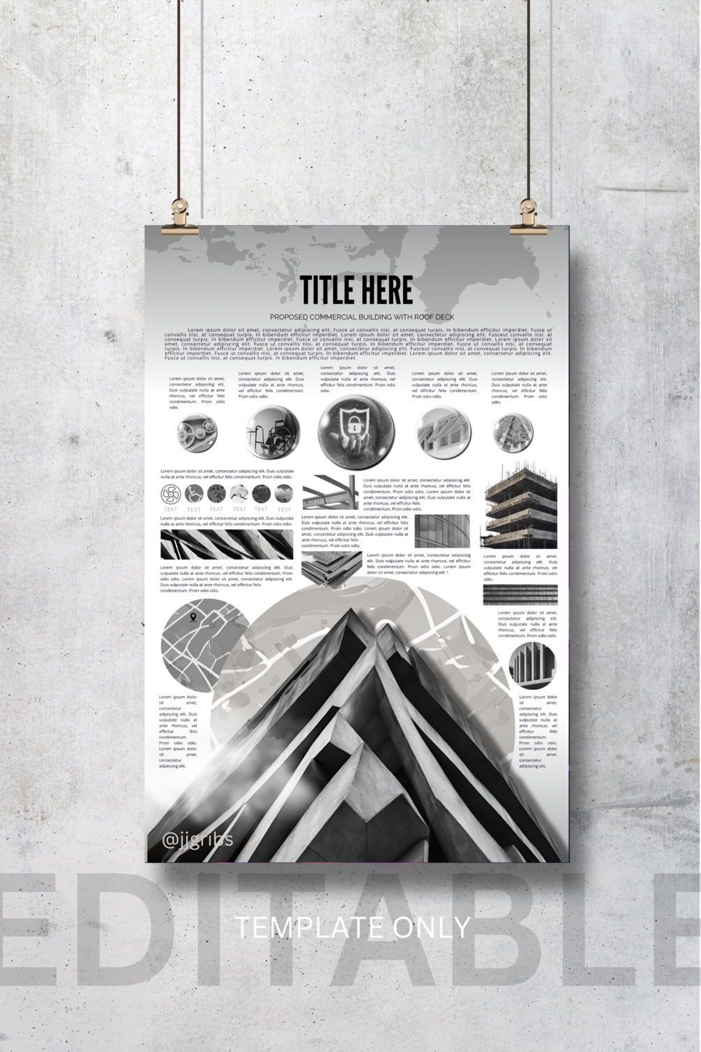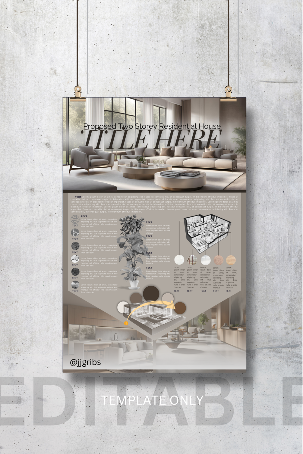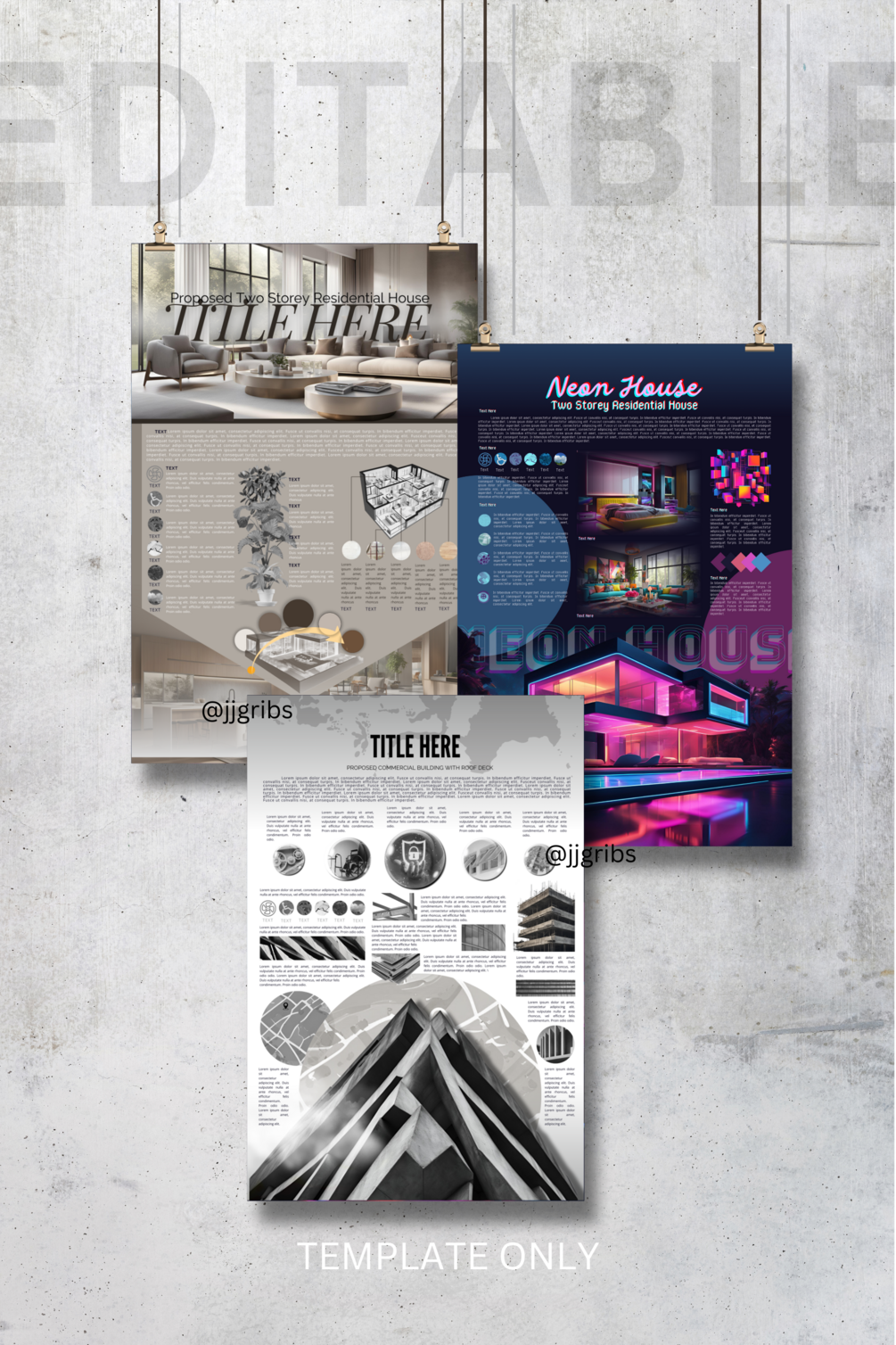 3 template sets of Architectural Concept Boards once you avail this product. This would probably help you how concept board works in Canva. It can be your practice guide to make your own creative and attractive presentation for your designs.