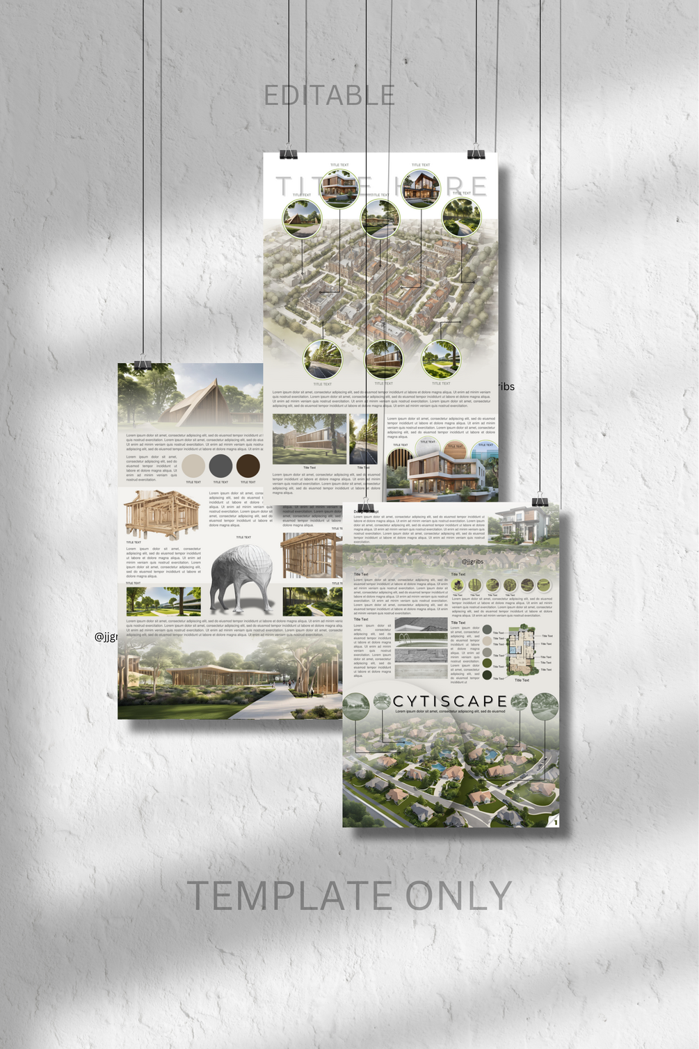 3 template sets of Architectural Concept Boards once you avail this product. This would probably help you how concept board works in Canva. It can be your practice guide to make your own creative and attractive presentation for your designs.