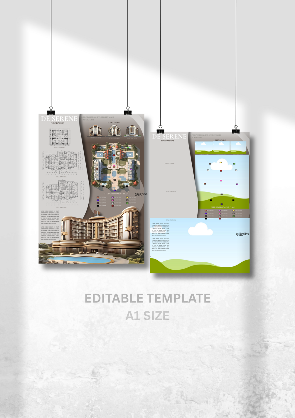 2 template sets of Architectural Concept Boards once you avail this product. This would probably help you how concept board works in Canva. It can be your practice guide to make your own creative and attractive presentation for your designs.