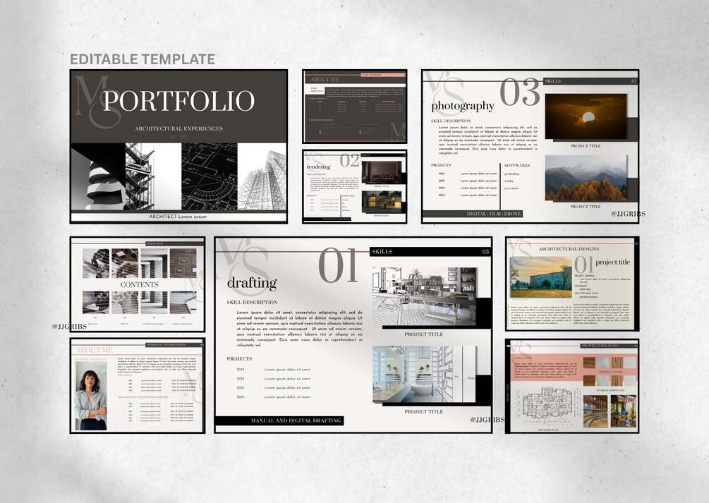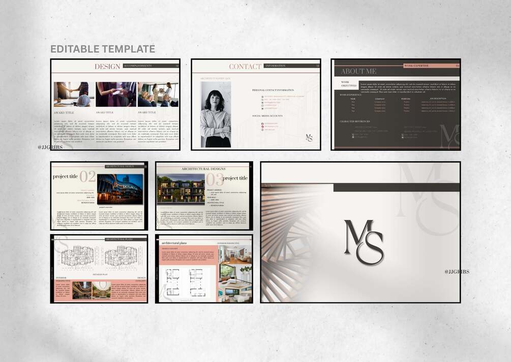You'll receive 15 pages of Architectural Portfolio once you avail this product. This would probably help you how portfolio works in Canva. It can be your practice guide to make your own creative and attractive presentation for your designs.